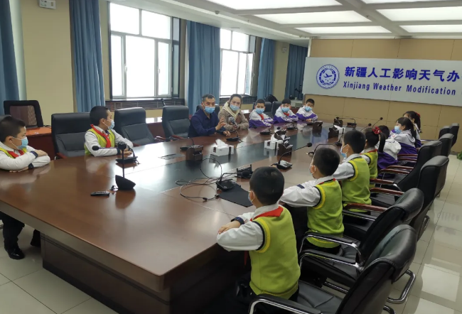 组织新疆961广播电台的15名小记者到新疆气象局科普小课堂——科普教育基地学习,邀请总工程师张杰解读气象日主题,小记者们通过轻松的互动环节学习到了生活中的气象常识。