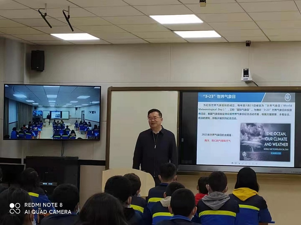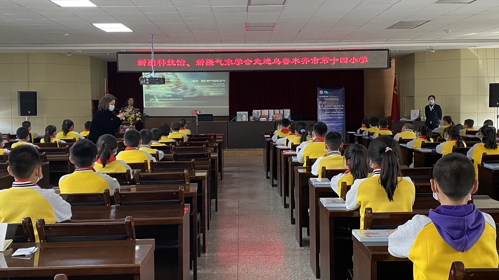 (二)3月18日,新疆气象学会以世界气象日——“海洋,我们的气候和天气”为主题,联合新疆科技馆、自治区团委走进了乌市第十四小学开展气象日系列科普活动,为同学们带去了精彩纷呈的气象科普盛宴。现场活动设置科普课堂、专题讲座两大环节。