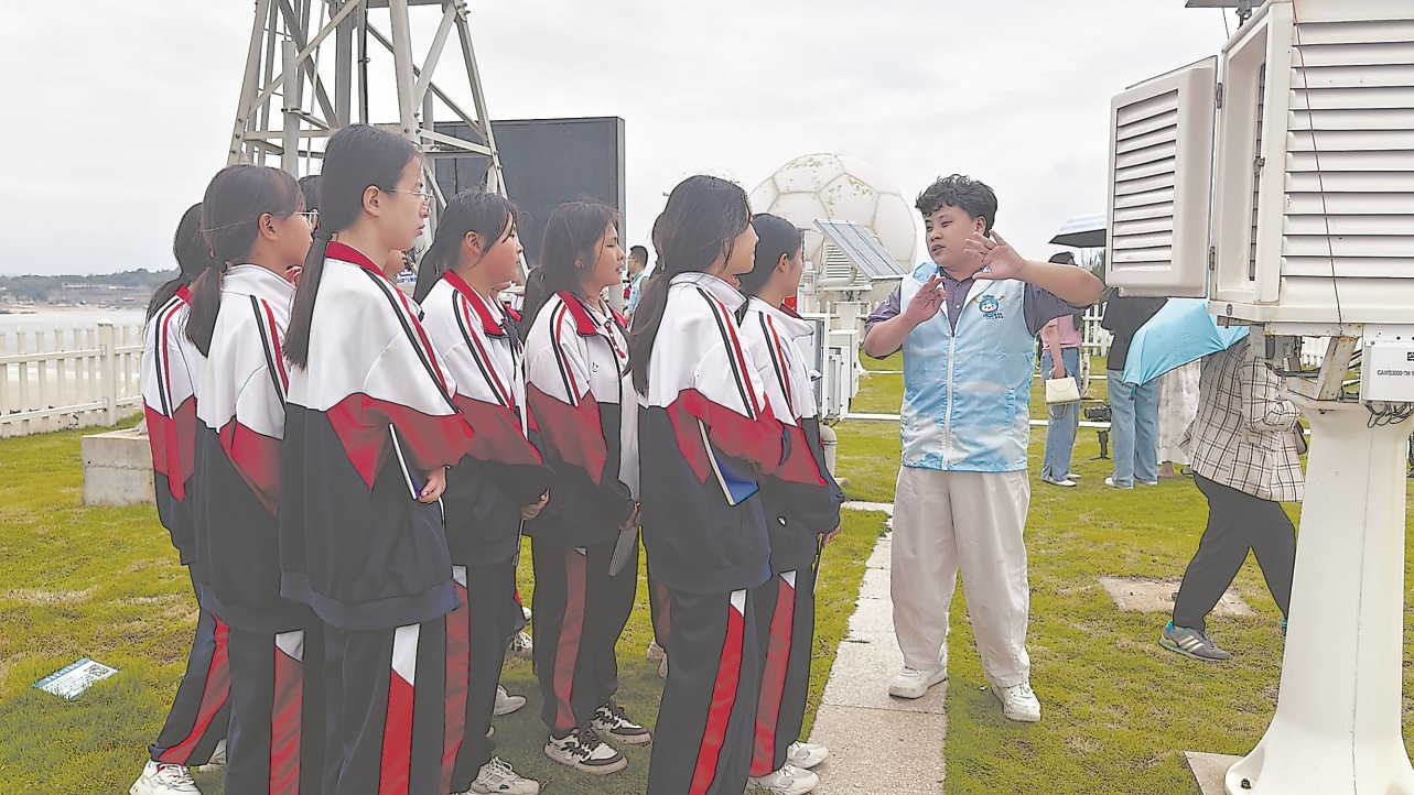活动首站开启“探寻‘蓝眼泪’的气象密码研学之旅”,平潭的中学生先后走进气象科普展厅、气象观测场、气象台等,了解当地气候特征、气象探测设备的发展历程以及气象相关知识,并听取了“蓝眼泪”预报的科普讲座。“今天的研学让我学到了许多气象知识,感觉非常有意义,希望以后还能继续参加类似的活动。”平潭流水中学初二学生王韵雅说。