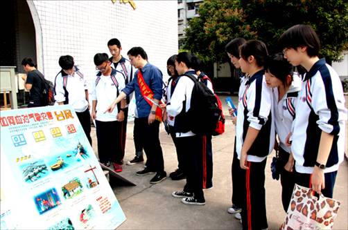 4月28日下午,福建省气象学会和福建省大气探测中心应福建省省级示范性高中——福州市第三中学的邀请,来到校园内,为三中校园科技节做气象科普知识宣传活动,展示气象科技,普及气象防灾减灾、应对气象变化知识。 “台风是怎么形成的?我们如何防范呢?” “天气预报是如何做出来的?” “气象自动站是怎么观测气象数据呢?” …… 针对学生们热情又好奇的提问,气象志愿者们通过气象科普展板进行生动讲解,并向大家赠送《气象知识》、《气象灾害防御》等科普材料和书籍。另外,福建省大气探测中心在三中校园内临时安装一套六要素自动气象站,并向学生们详细讲解设备的各项功能。 “学生们平时只能从书上学习到气象知识,今天与气象仪器近距离接触,一定程度上能激发他们学习气象科技知识的热情与兴趣。”福三中地理教研组组长、福建师大地理系兼职副教授车云老师说,“通过气象知识学习,加深了学生们对气象知识的兴趣。” 校园里的学生们是祖国的未来,是科学应对气候变化和气象防灾减灾的生力军和后续力量。气象科普进校园,对中学生们进行气象科普教育,播下气象防灾减灾和应对气候变化的种子,从而影响和带动社会公众提升气象科学素养,促进气象知识的传播与普及。