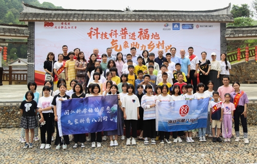 29日,专家们及科技志愿服务队一行走进了“清新福建?气候福地”之一的漳州市华安县高安镇坪水村开展气象科普巡展进乡村活动。在大山深处的坪水畲族村民们在村中心广场上用热情的畲族鼓和舞欢迎专家们的到来。