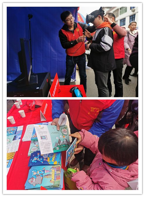 活动现场气氛热烈,人工增雨气象科普VR吸引了许多同学和乡亲们进行现场体验,同学在体验后表示沉浸式科普体验很有趣,在互动中了解了人工影响天气作业全过程,还明白了人工增雨原理。该展项是全国百部气象科普好作品,还获得2019年全国气象科技周南京主场科普互动体验最受欢迎展项,此前参加到内蒙古突泉县的全国气象科技下乡活动也大受欢迎。本次服务现场还设置气象科技专家咨询,指导群众认知“泰宁气象防灾减灾明白卡”,前来咨询的还有当地的气象信息员,对获取、传播和应用气象信息等进行积极沟通建议。现场发放的气象科普系列动漫、《气象知识》等图书很受小朋友欢迎,前来的家长也为家中孩子领取,图书很快分发一空。