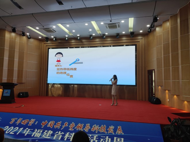 据悉,此次大赛由福建省科学技术厅、中共福建省委宣传部、福建省科学技术协会共同主办,以“百年回望:中国共产党领导科技发展”为主题,气象选手们从季风、地震云、负氧离子等方面向公众作科学普及,弘扬了科学精神,普及了气象科学知识。