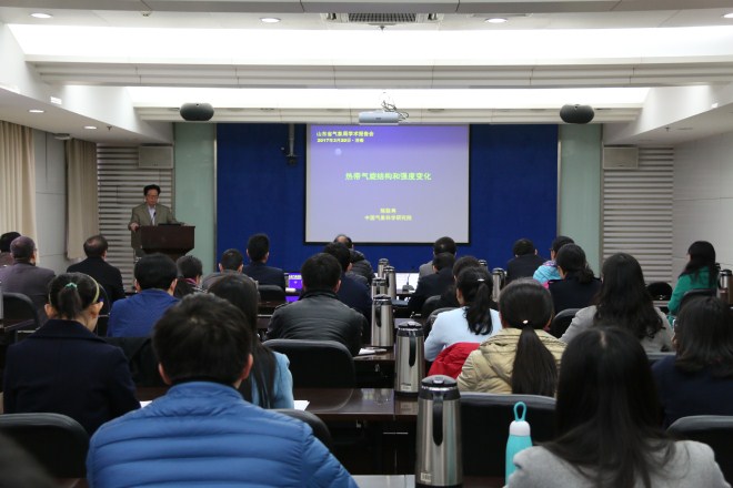 3月20日上午,山东气象学会在济南举办院士学术报告会,并通过视频会商系统向全省各市局直播。中国工程院陈联寿院士为全省气象科技工作者作了题为《热带气旋的结构和强度变化》的专题学术报告。