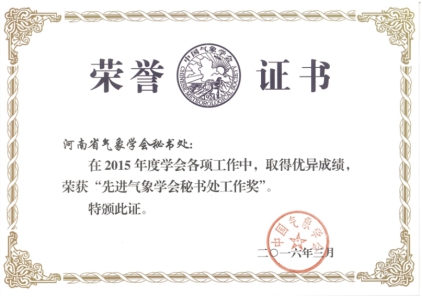 (一)荣获中国气象学会“先进气象学会秘书处工作奖”,这是连续第五年获此奖励。
