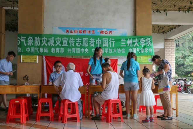 在活动现场,前来领取阅读宣传资料的市民络绎不绝。志愿者们利用科普展板、宣传彩页、科普小册子等多种形式重点宣传了气象灾害、预警提示、应急避险、紧急救助以及气候变化等方面的气象科普知识。兰大学子变身科普宣讲员,耐心地为居民解答关于雾、霾、雷电、暴雨、冰雹等气象灾害的防御避险和自救互救等基本常识。宣传期间发放防灾避险知识等科普宣传资料200余份。