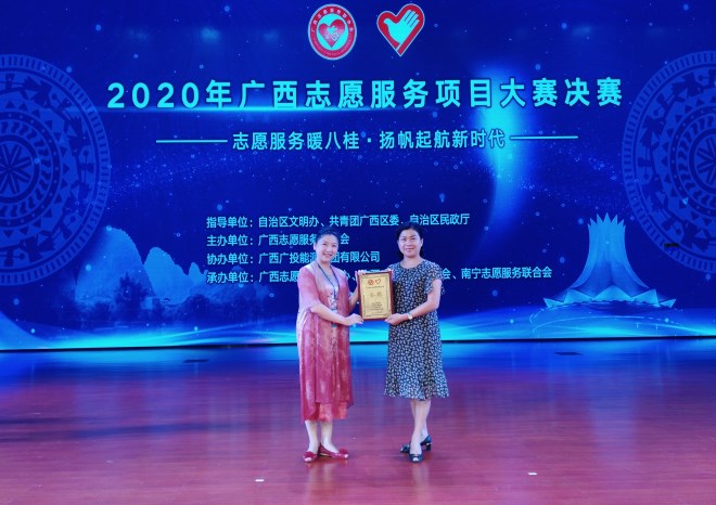 9月24日至26日,2020年广西志愿服务项目大赛暨志愿服务交流会在南宁市举办,由广西气象学会申报的《“分享阳光?分担风雨”广西气象科普志愿服务》项目荣获金奖。