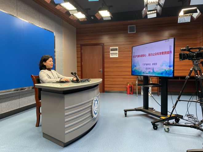 另外,广西气象学会还录制了广西气象台首席预报员农孟松宣讲报告、陈伟斌、植耀玲、黄莉、梁俊聪等广西优秀青年气象科技工作者的访谈、广西优秀集体--广西气象台短时临近预警中心访谈的录像,通过广西气象远程教育网向全区2000多名气象同行宣传。(罗桂湘 朱彦)