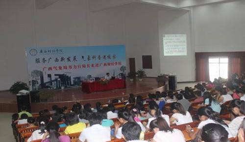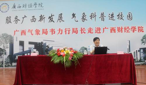 -----广西气象局局长韦力行给广西财经学院师生作科普报告