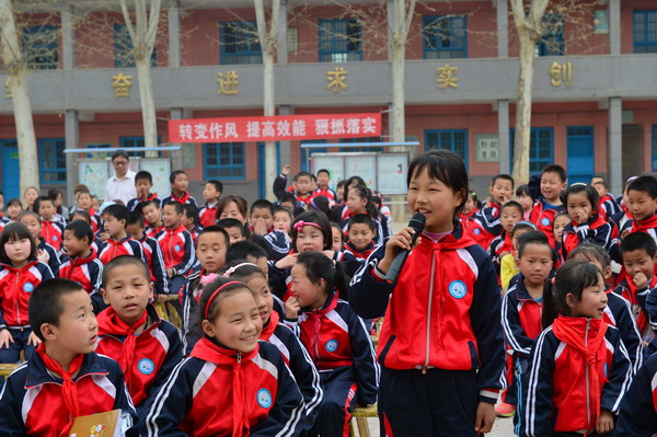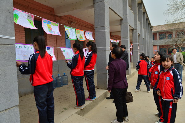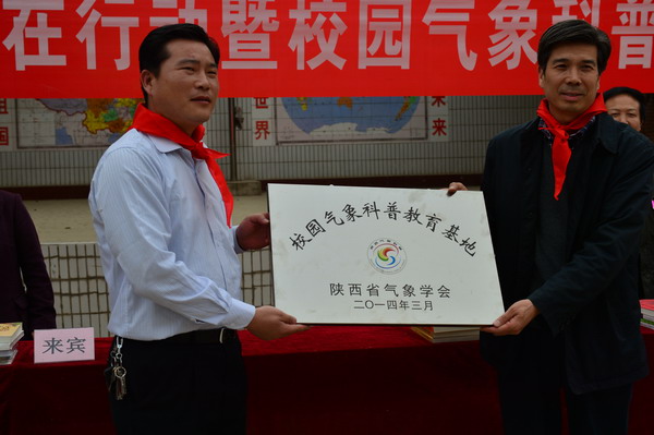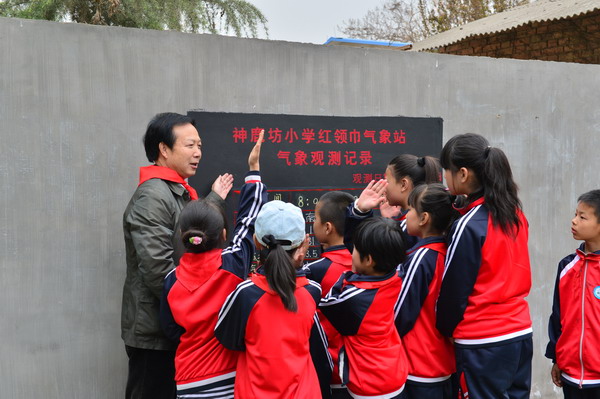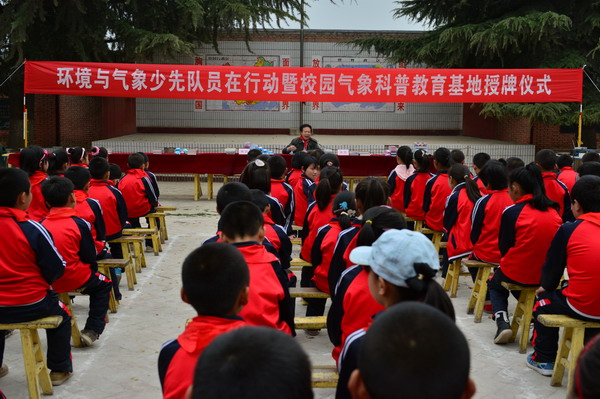 神鹿坊校园气象科普基地授牌省气象学会为神鹿坊小学赠科普图书“大手拉小手 专家带你识气象”活动现场积极抢答回答正确,老师奖励看看同学们的环保板报专家指导学生进行气象观测现场回答同学们的问题