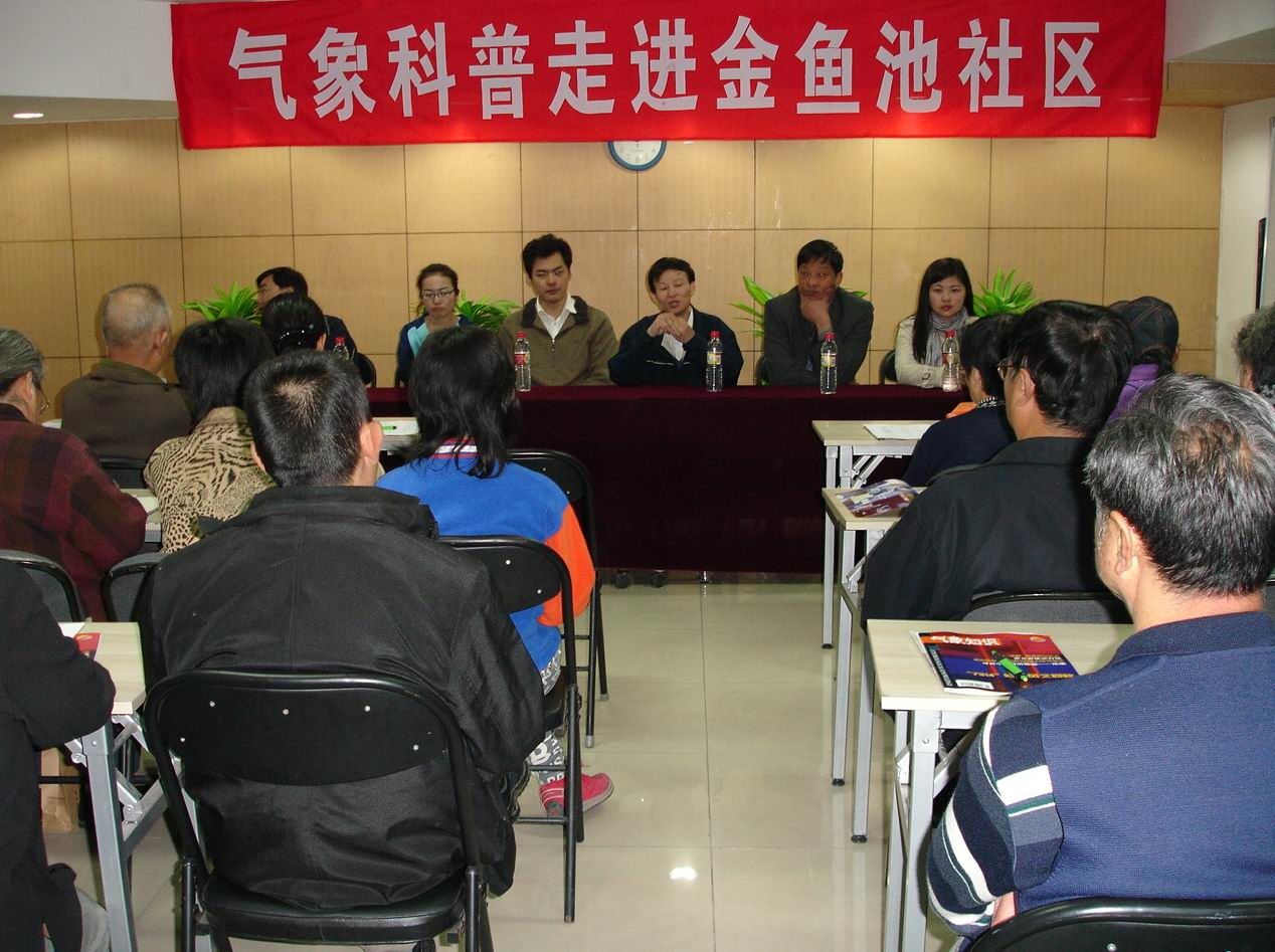“请问降水概率是怎么回事?”、“请问什么时候锻炼身体最好”?请问…….。4月19日,在北京市崇文区金鱼池小区活动中心,居民们纷纷向在座专家提问,场面十分热烈,这是中国气象学会、中国气象局网站联合举办的气象科普进社区的活动。