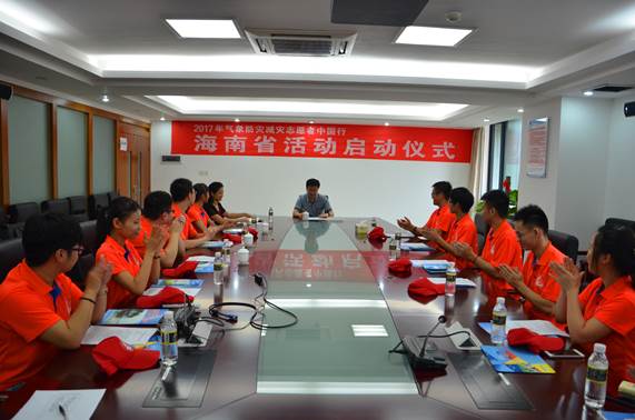 7月18日,2017年“气象防灾减灾宣传志愿者中国行”海南省活动在海口市正式启动,海南省气象局副局长辛吉武出席启动仪式并讲话。启动仪式结束后,成都信息工程学院气象类专业的暑假返琼大学生志愿者,将在省气象学会工作人员的陪伴下,奔赴琼海、文昌、三沙等市县,开展气象防灾减灾科普宣传活动。
