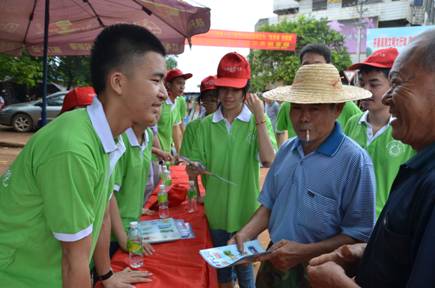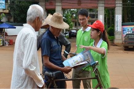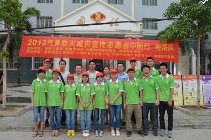 7月23日,志愿者队伍到海南省临高多文镇开展气象宣传  7月23日,志愿者给海南省临高县多文镇老百姓讲解防灾减灾知识 7月23日,志愿者同海南省气象学会、临高气象局的工作人员愉快合影