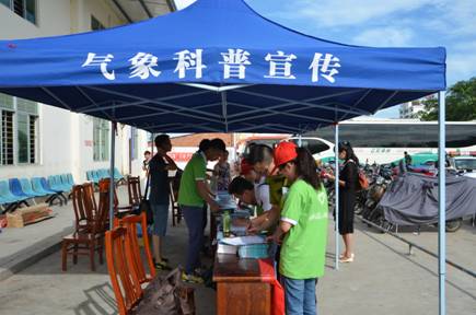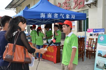 7月24日,海南省东方市电视台记者采访群众对本次宣传活动的看法 7月24日,海南省东方市八所镇,遮阳篷助力志愿者开展科普宣传  7月25日,志愿者们在海南省乐东县利国镇开展气象宣传