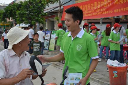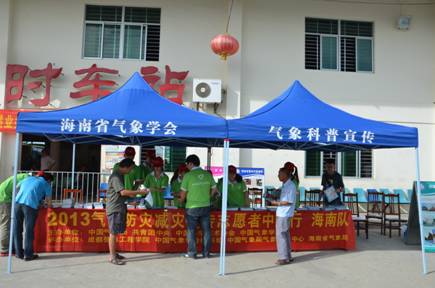 7月25日,为期3天的2013年“气象防灾减灾宣传志愿者中国行”海南省活动圆满结束,宣传效果显著。 参加2013年“气象防灾减灾宣传志愿者中国行”海南省活动的志愿者大学生来自成都信息工程学院,在海南省气象学会的精心组织、积极协调下,他们先后顺利走进临高县、东方市和乐东县的集市、车站、街道开展气象防灾减灾知识宣传。通过向群众发放防灾减灾宣传材料、讲解日常气象灾害避险知识、接受群众对日常生产生活中相关气象知识咨询和防灾减灾展板宣传等方式开展宣传,得到群众的好评。此次宣传中,志愿者们共发放宣传材料一万多份,接受咨询3000多人次。 继2009年以来,今年暑假是第五次举办此项活动。志愿者中国行这一大型气象科普活动,已得到社会各界的广泛关注,逐渐成为传播气象科普知识的品牌活动。今年的活动主题是“美丽的家园,共同的梦想”。
