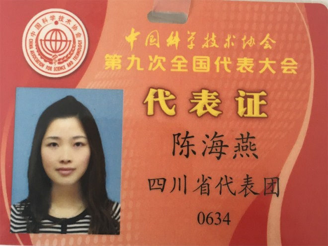 陈海燕同志作为四川省气象科技工作者代表有幸参加这次科技盛会,体现了各级党政对气象工作的重视,表明了科协组织对四川省气象学会工作的认同。同时,作为四川代表团年龄最小的一名代表,陈海燕同志积极建言献策,向大会提交了《推动气象灾害防御部门联动数据共享》、《调整科研经费管理方式提高事业单位科研人员积极性》两个提案,充分展示了年轻一代基层气象工作者积极向上的精神风貌。陈海燕表示,参加这次科技盛会深受鼓舞、倍感振奋,自己将在今后的工作中始终牢记“有多大担当才能干多大事业,尽多大责任才能有多大成就”,勇担重任,勇攀高峰,勇于创新,结合基层气象工作实际开展更多实用性、针对性强的科研项目,为地方经济社会发展和防灾减灾工作做出年轻气象科技工作者应有的贡献。 (四川省气象学会秘书处)