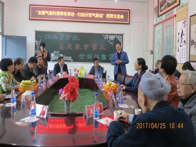 大坝小学“红领巾气象哨”创始人之一,现已88岁高龄的秦道新老人出席授牌仪式并参加随后举行的座谈会。他为自己能成为“红领巾气象哨”的创始人之一并作出多年艰辛付出而倍感自豪,为大坝小学能成为“全国气象科普教育基地”而倍感欣慰。其他参会领导和代表为大坝小学就如何进一步办好校园气象科普建言献策。