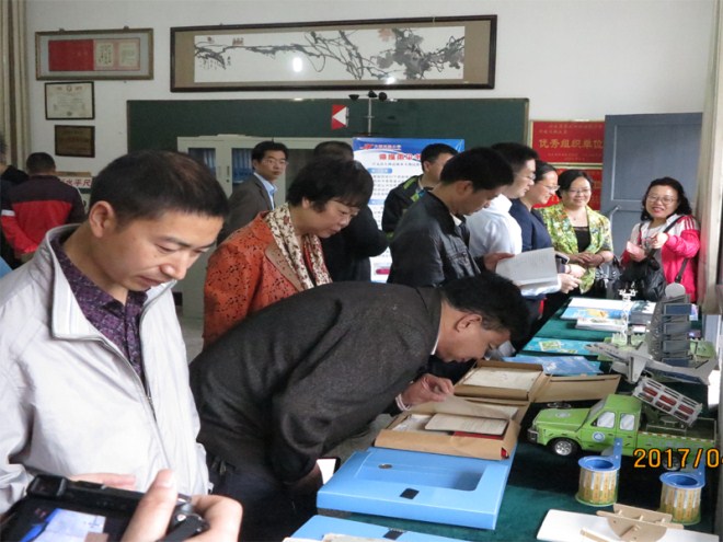 刘文泉一行在授牌仪式后兴致勃勃地参观了“红领巾气象哨”和学校陈列室,了解观阅红领巾气象哨成长的历史和档案。