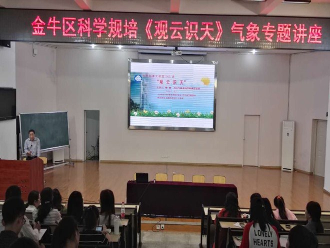 培训分院高级讲师韩健还为在场的金牛区全体科学教师进行了主题为“观云识天”的专业知识讲座。科技老师们踊跃提问并表示:小学四年级的云的观测课程中需要很多的专业知识,通过韩老师的讲解,我们今后授课知识更全面,更有信心了。