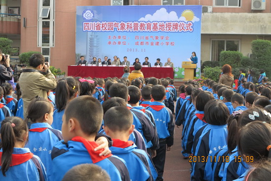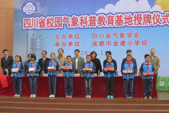 11月18日,四川省第一批校园气象科普教育基地授牌仪式在成都市金建小学隆重举行。四川省气象局总工程师、四川省气象学会副理事长钟晓平,四川省科协副主席黄竞跃等参加了授牌仪式。 授牌仪式上,气象学会副理事长钟晓平宣读了四川省气象学会关于《命名第一批校园气象科普教育基地的通知》并授牌;省气象学会还向金建小学赠送气象科普读物500余册。授牌仪式结束后,省气象局正研级工程师黄福均做《火箭发射中的气象保障》气象科普专题讲座。 近年来,成都金建小学以气象观测基本知识和技能为切入点,以学生喜闻乐见的气象实践、体验活动为依托,开展气象科普知识的宣传教育。学校成立了“童辛园”人工气象站观测点,建立了成都市首个校园数字气象站,学校学生每天都要进行气象观测和天气播报。 此次被命名的四川省第一批校园气象科普教育基地,将在省气象学会和省科协的指导下,不断完善科普条件,加大校园科普活动组织力度,多种形式开展校园气象科普活动,积极发挥示范带头作用,普及校园气象科学知识,提升学生预防气象灾害的能力。