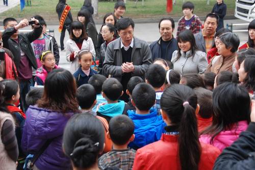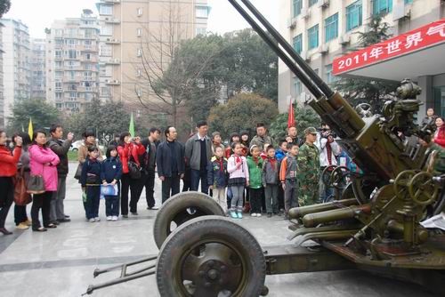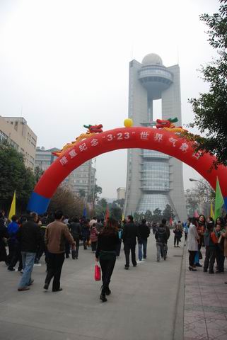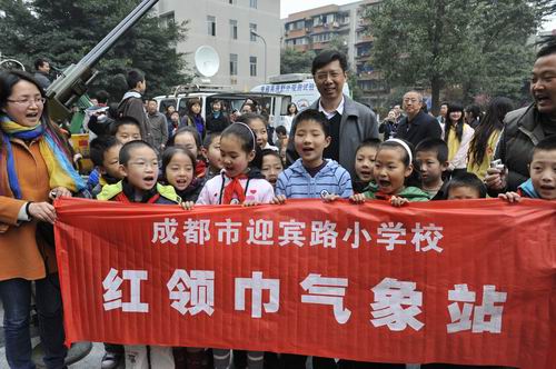 3月19日,四川省气象局大院内彩旗招展,人声鼎沸,“隆重纪念3.23世界气象日”的标语格外醒目。上午八点多,成都市锦里小学、金建小学等学校的学生们便在老师、家长的陪同下,早早赶到了气象局。“前几天我们就晓得气象局要搞活动,所以今天起得特别早。”锦里小学的学生王浩告诉记者,他早上不到七点就起床了。“ 从报纸上看到气象局要举办活动的消息后,我们提前与气象局联系,把学生们都组织来了。”锦里小学的李老师说,这次他们学校是有备而来,不但制作了与气象日有关的标语,还把许多学生家长也请到了现场。“ 女儿要我陪她到气象局参观,我二话不说就答应了,今天特意起了个大早。”在成都体育学院工作的冉健边忙着拍照,边偷空回答记者。
