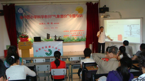 2011年9月9日上午,由四川省气象学会和成都市金牛区教育研究培训中心联合主办的金牛区小学教师“气象部分”专题培训在成都市金建小学举行。