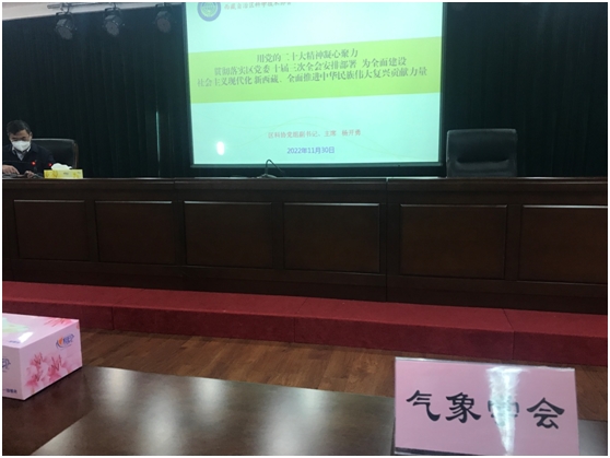 2022年11月30日,西藏自治区科协行业党委在科协举办党的二十大精神宣讲会,邀请科协党委副书记、主席杨开勇同志作专题报告。西藏自治区气象学会党支部副书记、秘书长卓嘎同志代表学会参加了宣讲会。杨开勇主席做了《用党的二十大精神凝心聚力贯彻落实区党委十届三次全会安排部署,为全面建设社会主义现代化新西藏,全面推进中华民族伟大复兴贡献力量》的专题报告。