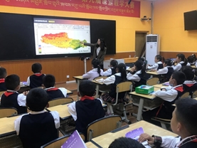 专家们通过展示一系列美丽的遥感图片、动画和视频,向学生讲解了遥感技术的原理和西藏自治区遥感应用研究中心的火情、湖泊、积雪等监测业务,并借助具体案例介绍了卫星遥感技术在冰崩、滑坡、冰湖溃决等灾害监测方面的特色服务以及西藏生态环境变化等知识,将丰富多彩的遥感世界呈现在同学们面前,引发了在场学生们的浓厚兴趣。课堂上,两位专家与同学们热情互动,并设立了提问环节。同时,西藏自治区气象学会还为同学们准备了礼物,现场举起的小手此起彼伏,氛围十分活跃。
