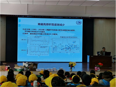 9月20日周兵专家给拉萨北京实验中学学生做了“极端天气与全球沸腾的时代”的科普讲座。周兵专家作为国家气候中心新闻发言人,中国气象局气候服务首席专家以及中国科协气候变化科学传播首席专家,他的讲座妙趣横生,让到场的250余名学生了解全球变暖和极端天气灾害等知识。讲座中他与学生进行互动交流,回答了学生的提问,发放了科普纪念品,整个会场气氛热烈,学生收获丰富。