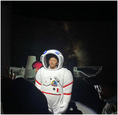 展览现场由感知宇宙、认知宇宙、探索宇宙、体验区组成。学生们观看了西藏各地拍摄的星空巨幅画展,聆听了古今中外的天文发展和西藏的天文历法、生命的起源,人类探天方式、天文望远镜构造及使用、探天探月工程发展历程以及宇宙大爆炸、星象星座、宇宙奇观主题知识讲解。最后在VR体验、太空教室进行了亲身体验,增加了学习内容的形象性和趣味性。活动极大地激发了学生们探索宇宙奥秘的兴趣,将航天精神的种子播撒在孩子们的心中,激励学生们努力学习,传承航天精神,将来为实现中国梦、航天梦贡献自己的力量。