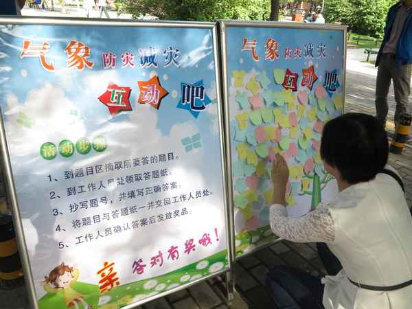 204年5月12日是我国第六个防灾减灾日,省气象学会联合省防雷中心、西安市气象局、西安经发物业管理有限责任公司,将气象科普直通车开进西安白桦林居社区。结合今年防灾减灾日“城镇化与减灾”主题,开展“防灾减灾从保护家园做起”科普活动。本次活动不仅有防灾减灾常识展板,科普宣传资料,还设有“气象防灾减灾互动吧”,在灯谜形式的气象灾害常识题条前,大叔大妈们踊跃参加,认真思考,选择自己感兴趣的话题,咨询现场专家、在活动展板和宣传资料中寻找答案,直通车小分队为答对的居民准备的丰富的精美礼品,居民们兴奋的说,今年的5.12不仅学习了气象知识,增强了防灾自救能力,还有这么多奖品,希望以后多举行这种活动。