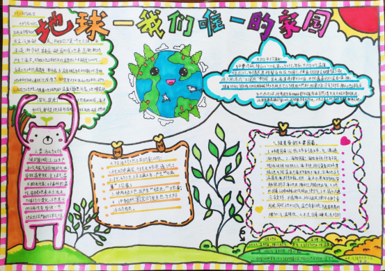 南街小学五年级吴俊希同学作品《地球——我们唯一的家园》,他说:“地球,我们生存的唯一家园,当阳光不再晴朗,天气阴晴难以预测......我们的家园正在被毁坏,本作品通过图文并茂的形式呼吁人们保护环境,保护我们的家园。”