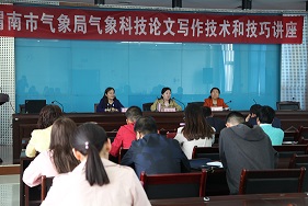 5日14日,《陕西气象》主编乔旭霞应邀在渭南市气象局进行气象科技论文写作讲座,就科技论文选题、论述、格式及投稿技巧等方面作了详细介绍,并与在场的科技人员,特别是论文作者,就论文写作和投稿作了交流。大家都表示讲座对自已今后选题、写作和投稿很有帮助。这次讲座是谓南市气象局2019年“科技周”活动之一,旨在帮助市县一线业务人员提高科技论文写作水平。