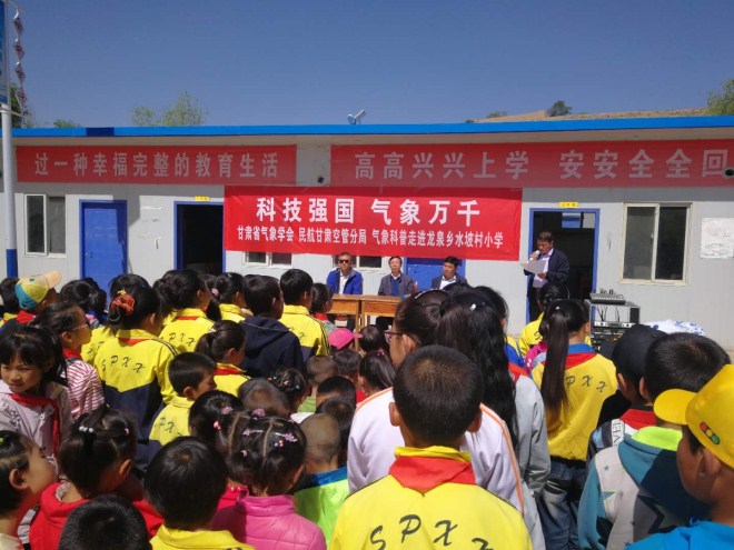 甘肃省气象学会还向水坡村小学赠送了气象科普图书《可以泄露的天机》、《中小学防雷避险知识读本》,多功能温度计、迷你手机风扇等气象科普品。(秘书处)