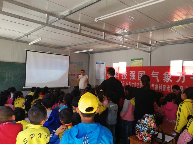 5月22日,按照2018年气象科技活动周活动计划,甘肃省气象学会 民航甘肃空管分局联合组织开展了以“科技强国 气象万千”为主题的气象科普进校园活动,“气象课堂”走进兰州市榆中县山区水坡村小学。民航甘肃空管分局气象台党委书记陈廷建、甘肃省气象学会秘书处工程师李伟栋分别为师生作了题为“气象与航空飞行安全”和“小学生气象灾害防御知识”的专题科普讲座。