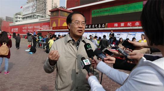 3月23日,学会副理事长、甘肃省气象局副局长张强在东方红广场接受新闻媒体采访