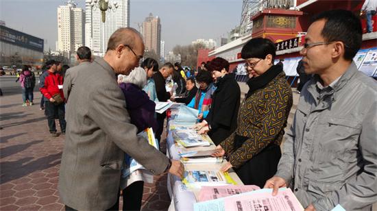 3月23日,气象科技人员在东方红广场开展科普宣传