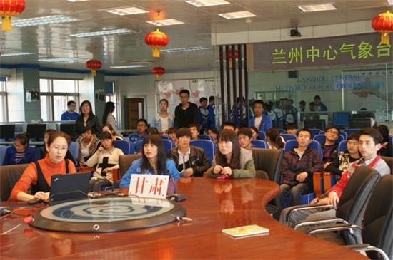 3月21日,中学生在兰州中心气象台听取气象专家讲解天气预报制作过程