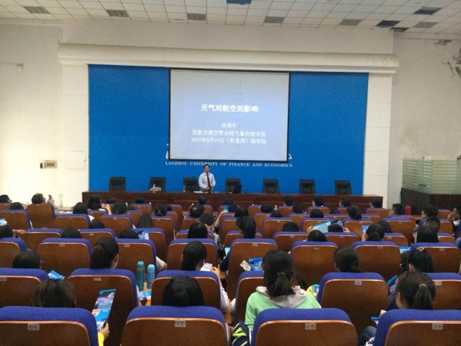 2015年5月19日,在2015年科技周活动期间,围绕今年“创新创业、科技惠民”的活动主题,甘肃省气象学会与中国气象学会联动,组织气象科技人员进入兰州商学院农林学院开展了气象科普进校园活动。活动邀请民航甘肃空管分局高级工程师孙伟中为学院300多名师生作了“天气对航空的影响”的专题科普报告。活动期间,气象科技人员还现场架设9要素气象自动站向广大师生演示,认真解答师生的询问,向师生发放气象科普宣传材料,介绍获取气象信息的途径和渠道。活动受到广大师生的热烈欢迎。