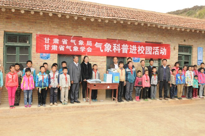 9月16日,在2015年全国科普日到来前夕,甘肃省气象局与甘肃省气象学会联合,把中央和省委“精准扶贫”的指示精神与2015年全国科普日 “科技成就梦想 拥抱智慧生活” 的主题相结合,用行动促进落实,深入省气象局“双联”联系点——渭源县秦祁乡中坪村与省气象局驻村工作队和乡、村干部及调整后的联系户座谈交流,深入了解情况和群众意愿,商讨今后有效开展工作的方法和途径,并向村委会赠送计算机设备。期间,省气象局与省气象学会的领导和专家,在中坪村小学开展了气象科普进校园活动,向小学赠送了气象科普期刊、科普折页、科普宣传单等材料,以及气象观测站和气象装备仪器手动组装模型,为师生深入掌握气象知识,直观了解气象科技提供了生动的材料,受到学校师生和乡村干部群众的热烈欢迎。