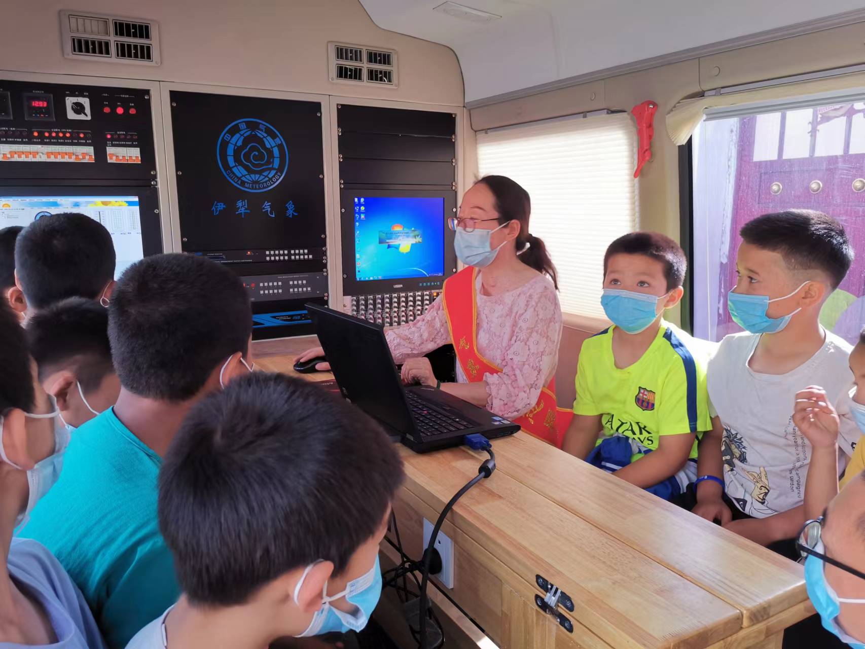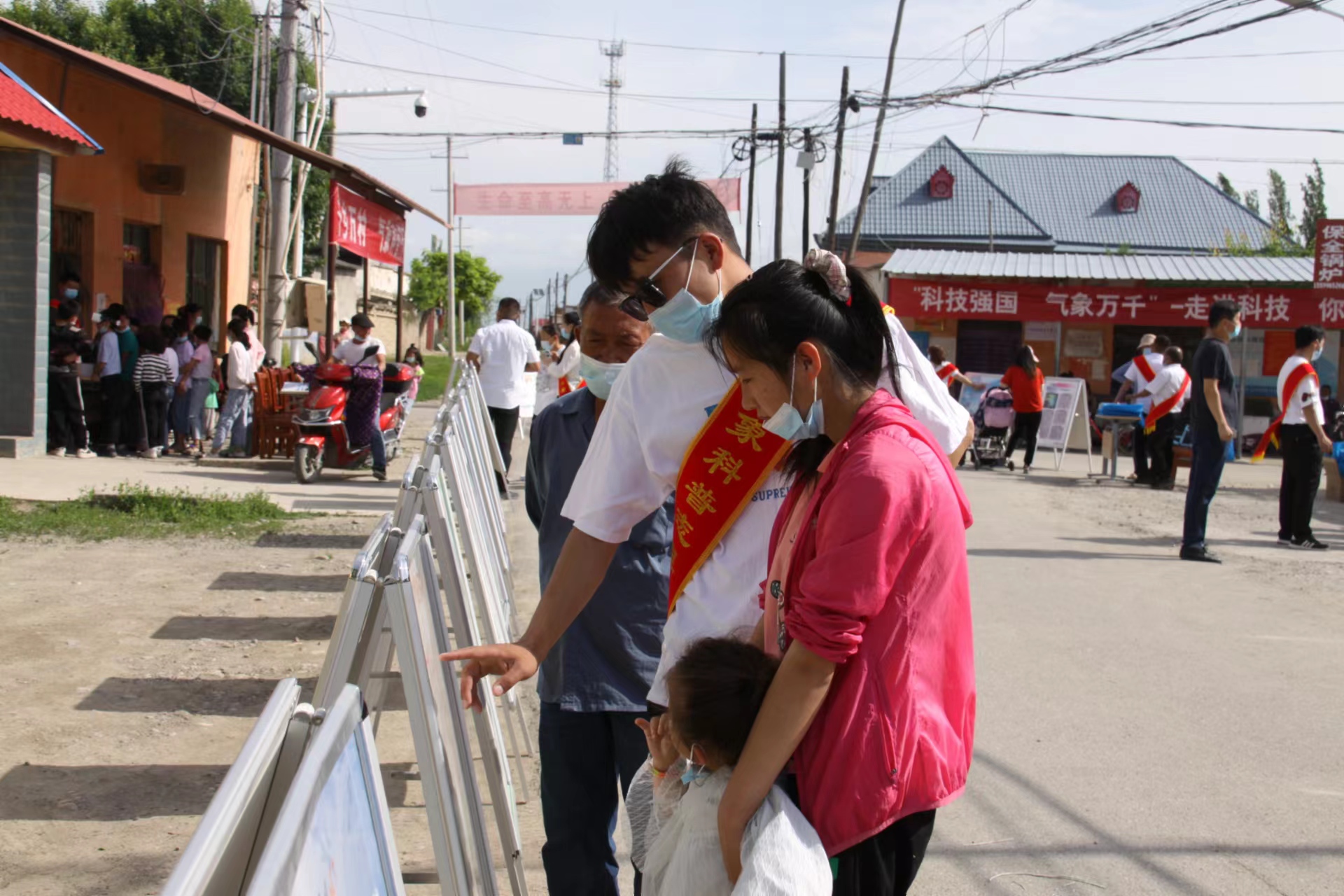 正值周末, 很多村民都带孩子来参加了此次气象科普宣传活动。孩子们对先进的气象设备和观测技术很感兴趣。