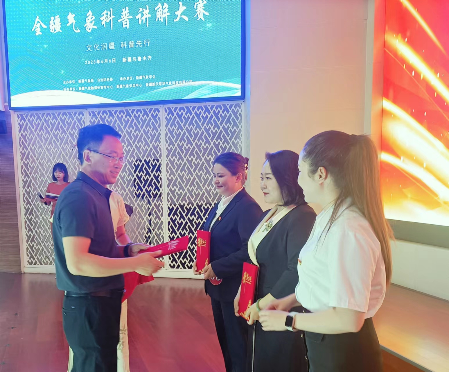 2023年6月6日,在自治区科协、中国气象学会、新疆气象局的大力支持下,由新疆气象学会承办,新疆气象融媒体宣传中心、新疆气象信息中心、新疆新天联华气象科技有限公司协办的以“文化润疆 科普先行”为主题的2023年“新天联华杯”全疆气象科普讲解大赛圆满举行。