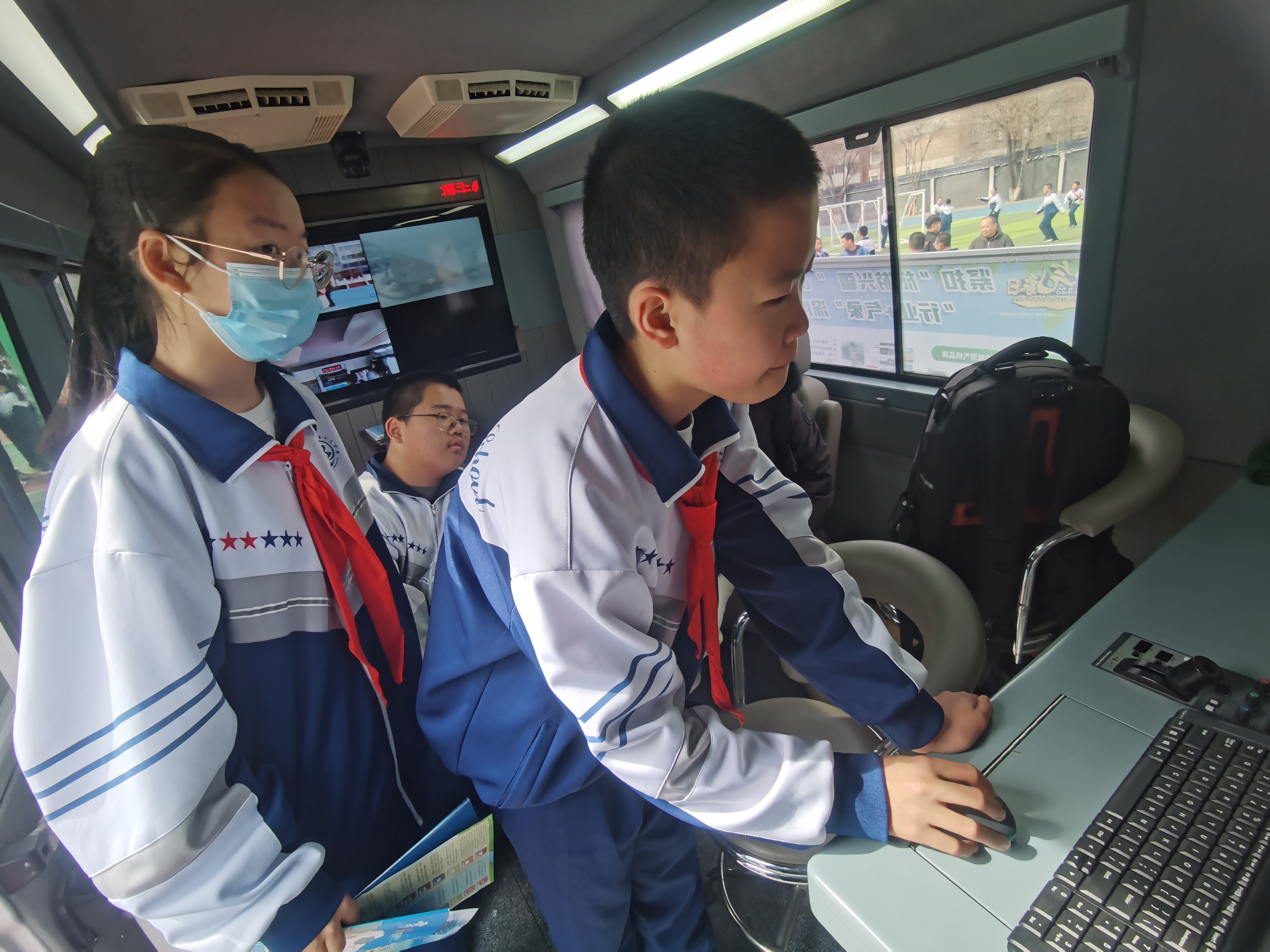 室外科普展览活动精彩纷呈,同学们观看了球幕影院里的科学电影、用VR设备体验了人工影响天气作业流程和模拟气象灾害,听志愿者讲解了气象知识,还近距离接触了人影作业火箭车、气象电视直播车、气象卫星模型、便携式自动气象站等设备展品。讲解和体验结合的方式,让同学们了解气象,让气象知识和防灾减灾知识深入人心。
