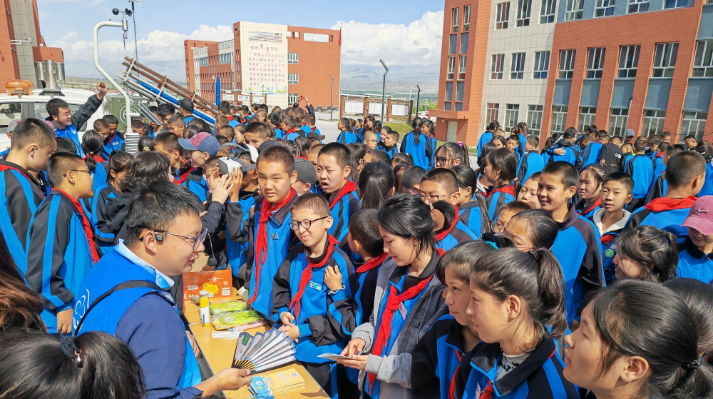 活动中,新疆气象学会为温泉县初级中学“星空校园气象站”揭牌,并捐赠了气象科普图书。