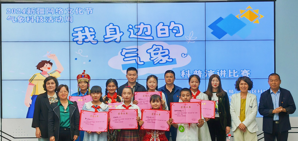 新疆气象学会还组织了温泉县初级中学“我身边的气象”演讲比赛决赛,经过激烈角逐,穆妮热·库尔班江获一等奖,艾呢哈儿·热合曼、巴丽达娜获二等奖,韩伊硕、叶丽娜孜、钱亭言获三等奖,铁·布乐日、吴英其聪获优秀奖。