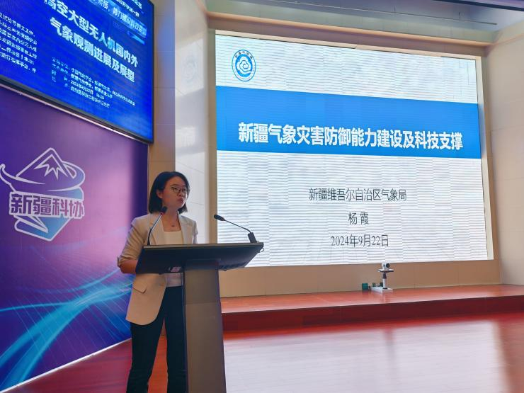 新疆气象台首席预报员、正高级工程师杨霞《新疆气象灾害防御能力建设及科技支撑》的报告。