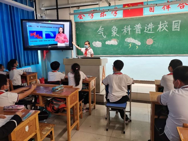 科技周期间,按照疫情防控的要求,学校里没有宣传展板,没有现场讲解,校园里的气象科普依然很精彩。5月19日上午直观、易懂的气象科普视频进入昌吉州实验小学,四年级56名学生通过观看气象科普知识视频及开展“气象知识进校园”的主题班会,认识并了解了生活中常见的气象知识及防灾减灾知识。这种零接触式的气象科普宣传形式不仅顺应了疫情防控要求,也丰富了校园第二课堂内容,同学们非常喜欢这类科普小视频。