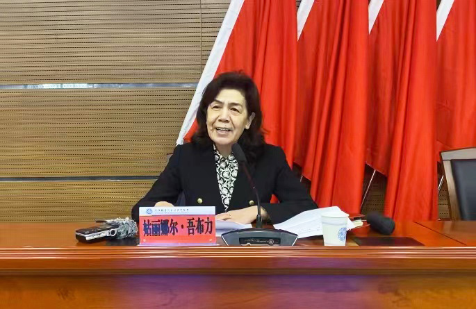 姑丽娜尔·吾布力向长期以来为自治区气象事业做出辛勤付出的气象工作者表示感谢,并对新疆气象学会2022年度在各方面取得的工作表示肯定,她要求,一是要坚持正确的政治方向,将学习贯彻落实党的二十大精神作为重中之重,贯穿于学会各项工作中。二是要通过举办国内外高层次、高水平学术会议、学术论坛等活动,进一步推动气象领域专家、学者之间的交流,以此进一步提高气象人才的专业水平,为新疆生态环境献出气象专家的智慧和决策。三是要充分发挥学科优势、人才优势,总结和凝练气象学科研究和实践中的工作经验,面向广大农牧民,普及和推广气象知识,进一步提升广大农牧民对气候及气候变化的认识。