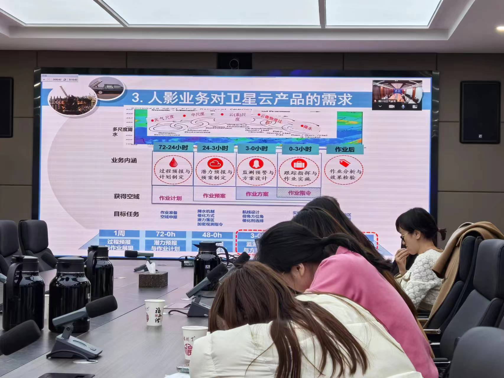 新疆人工影响天气办公室王志敏作《卫星资料在人工影响天气中的应用》的报告。