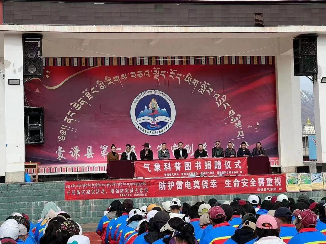 图为:玉树州囊谦县科普图书捐赠现场 图为:称多县、乡、村三级气象防雷减灾推进会